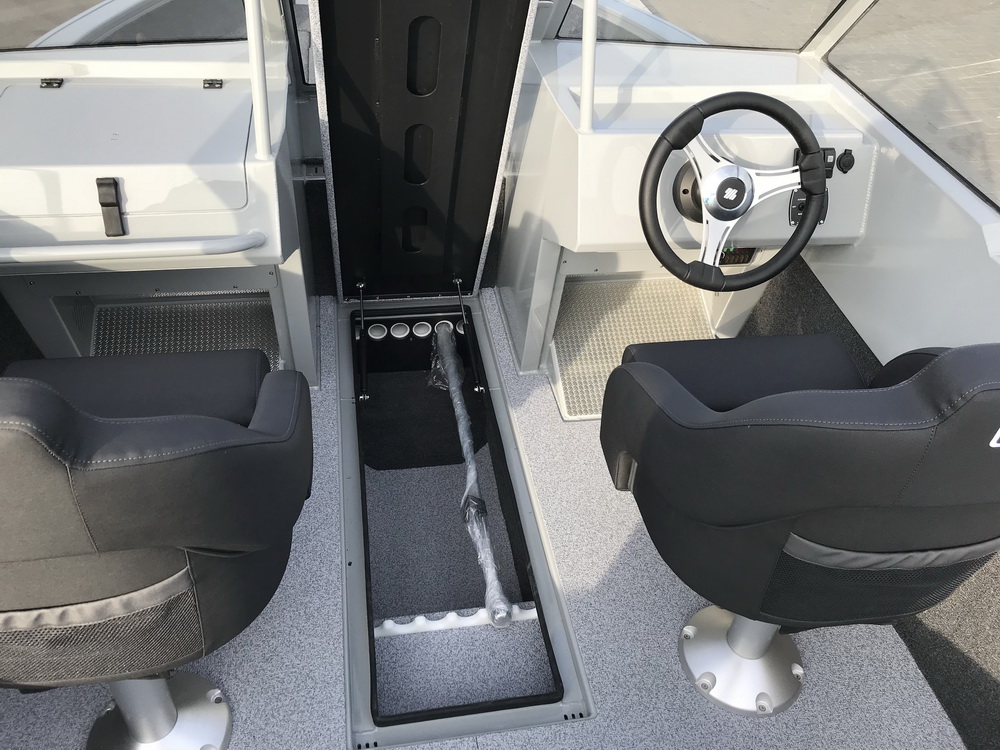 Общими чертами для лодок этой серии есть отсутствие фанеры и стеклопластика в конструктиве, просторная носовая фиш-платформа с 4 рундуками, продольные коробчатые рундуки по бортам для хранения длинномеров, кормовая фиш-платформа с интегрированным узким аэратором для сохранности улова.